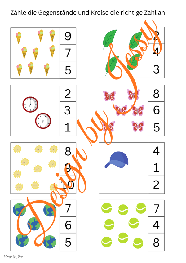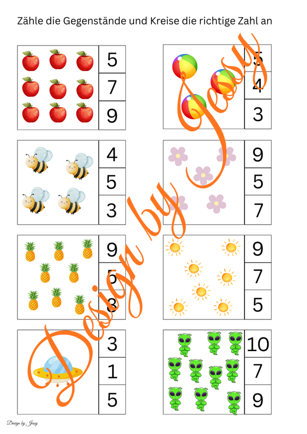 In dieser Mappe lernen die Kinder das zählen und das zuordnen der passenden Zahlen.