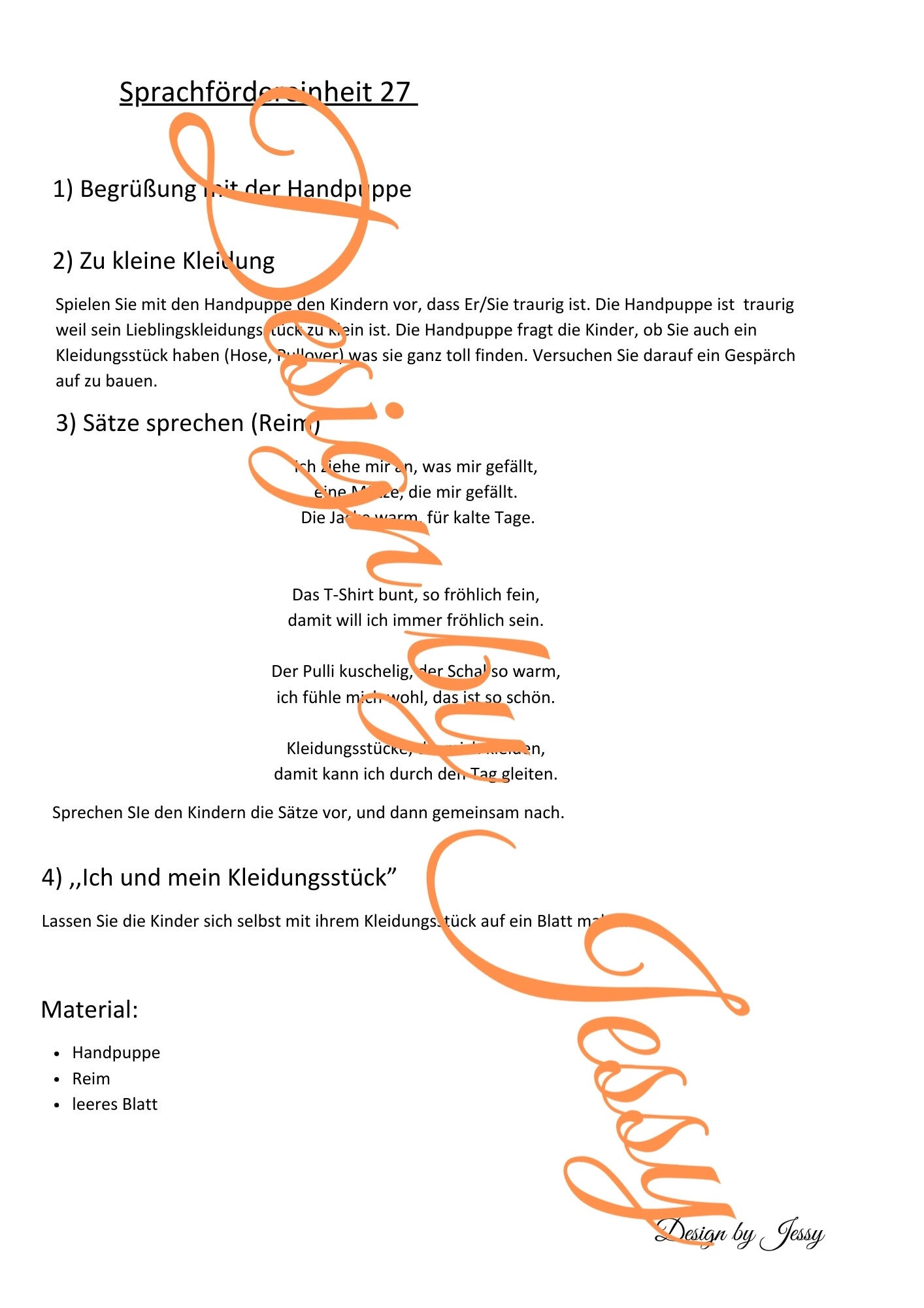 Sprachfördereinheit 27 Lieblingskleidung