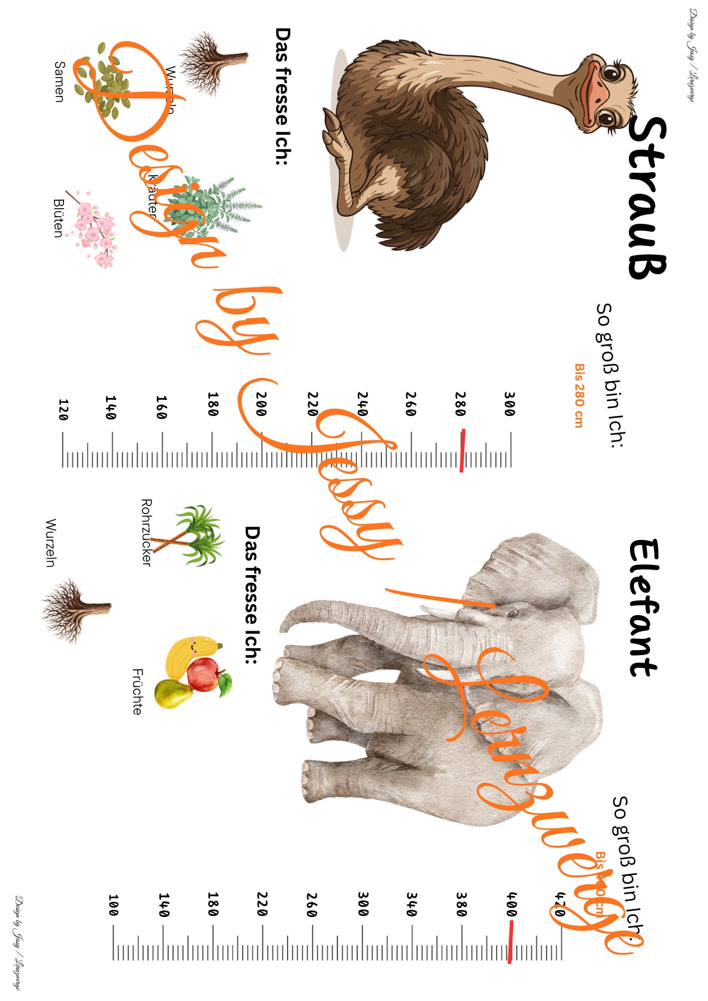 Jeder Steckbrief enthält die Körpergröße des jeweiligen Tiers, was einen direkten Größenvergleich zwischen den Arten ermöglicht. Ergänzend werden die Informationen durch anschauliche Abbildungen dagestellt. Welches Tier nimmt welche Nahrung zu sich. So entsteht ein kindgerechter, aber sachlich fundierter Einstieg in die Lebwnsweise und Merkmale afrikanischer Wildtiere.