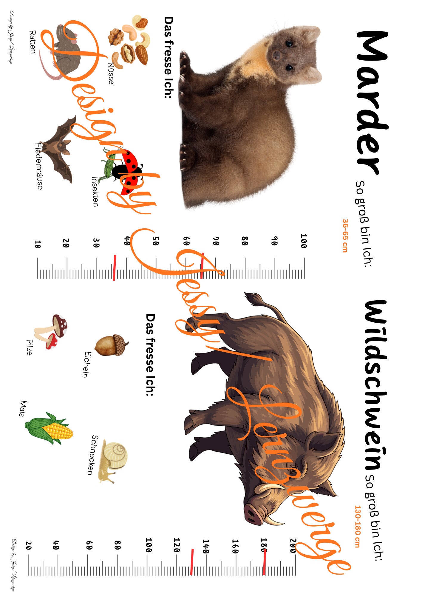 Jeder Steckbrief enthält die Körpergröße des jeweiligen Tiers, was einen direkten Größenvergleich zwischen den Arten ermöglicht. Ergänzend werden die Informationen durch anschauliche Abbildungen dagestellt. Welches Tier nimmt welche Nahrung zu sich. So entsteht ein kindgerechter, aber sachlich fundierter Einstieg in die Lebwnsweise und Merkmale europäischer Wildtiere.