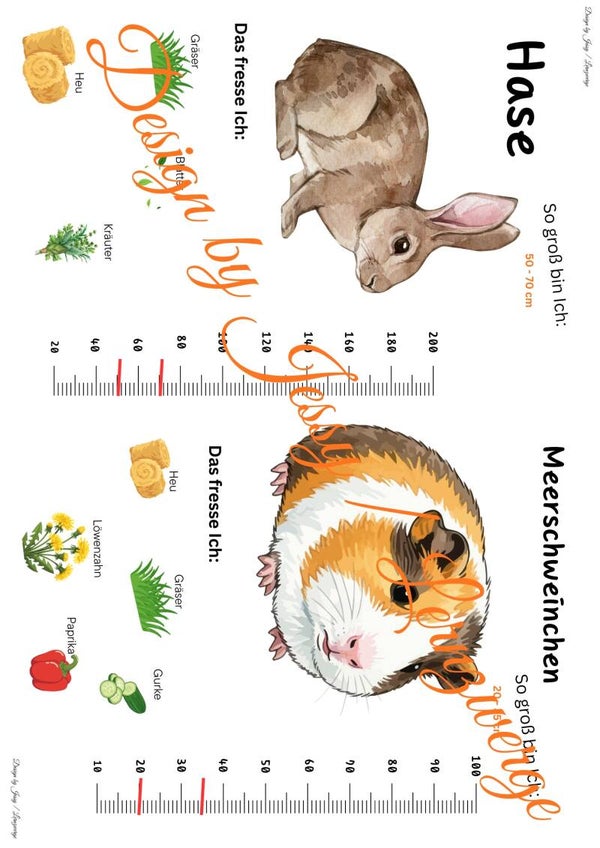 Jeder Steckbrief enthält die Körpergröße des jeweiligen Tiers, was einen direkten Größenvergleich zwischen den Arten ermöglicht. Ergänzend werden die Informationen durch anschauliche Abbildungen dagestellt. Welches Tier nimmt welche Nahrung zu sich. So entsteht ein kindgerechter, aber sachlich fundierter Einstieg in die Lebwnsweise und Merkmale der Haustiere.
