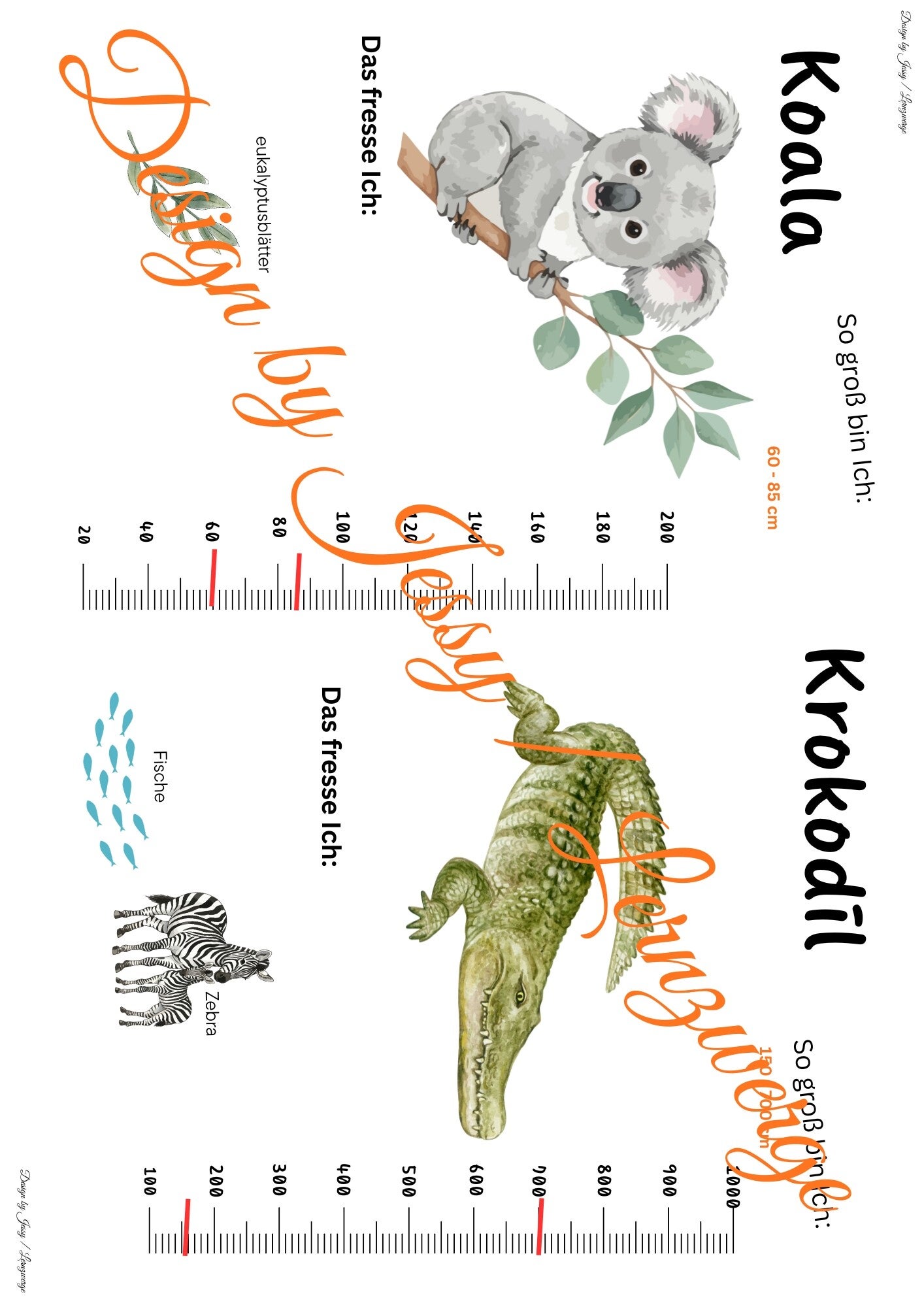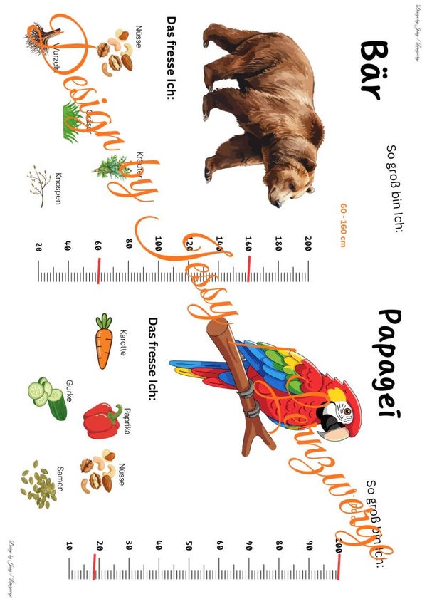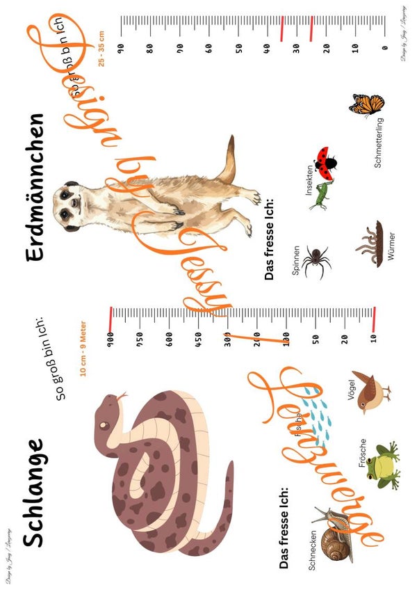 Jeder Steckbrief enthält die Körpergröße des jeweiligen Tiers, was einen direkten Größenvergleich zwischen den Arten ermöglicht. Ergänzend werden die Informationen durch anschauliche Abbildungen dagestellt. Welches Tier nimmt welche Nahrung zu sich. So entsteht ein kindgerechter, aber sachlich fundierter Einstieg in die Lebwnsweise und Merkmale der Zootiere.