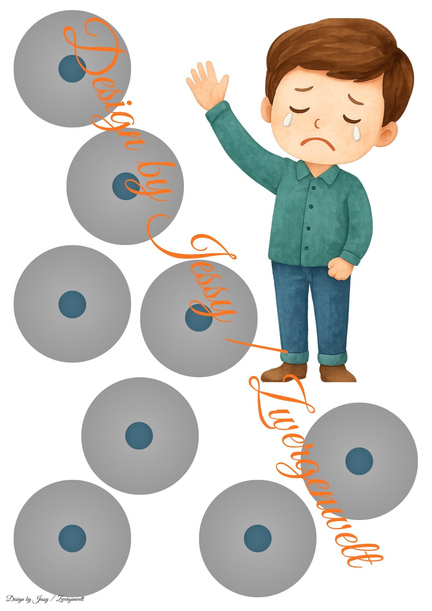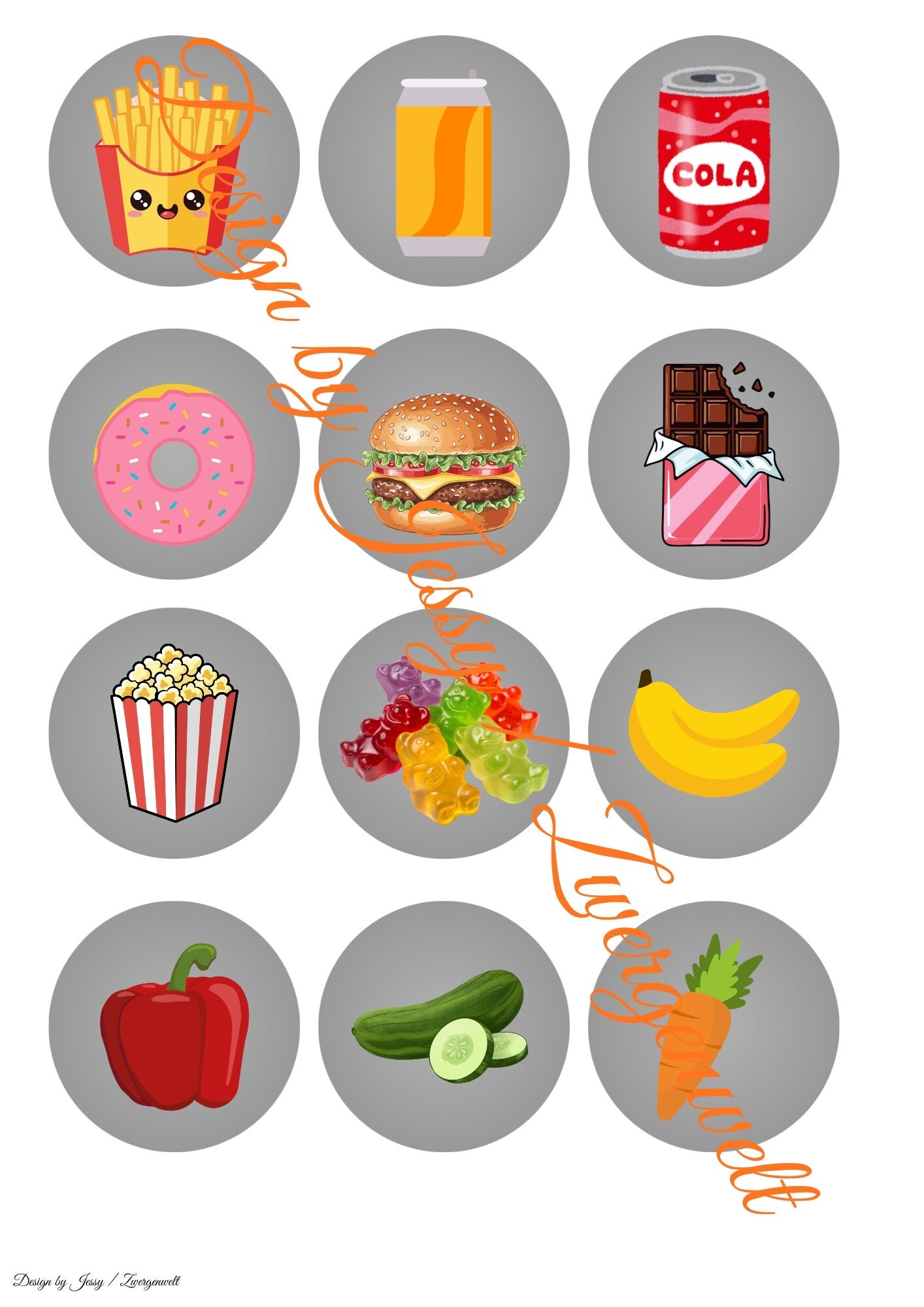 Dieses pädagogische Set enthält farbenfrohe Illustrationen von Lebensmitteln (z. B. Paprika, Maiskolben, Gummibärchen, Kürbis, Apfel) und Jungen-Figuren (fröhlich/weinend) . Inklusive Vorlagen zum Ausdrucken und Basteln einer interaktiven Klett-Mappe – ideal für Kita oder Zuhause.