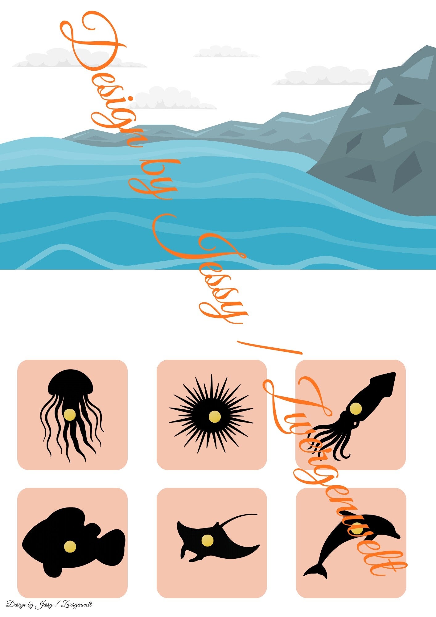 Dieses pädagogische Set enthält 12 farbenfrohe Illustrationen von Meerestieren (z. B. Hai, Qualle, Krabbe, Seepferdchen, Schildkröte, Delfin) sowie ihren passenden Schattenbildern. Inklusive Küsten-Hintergrund zum Ausdrucken und Basteln einer interaktiven Klett-Mappe – ideal für Kita oder Zuhause.