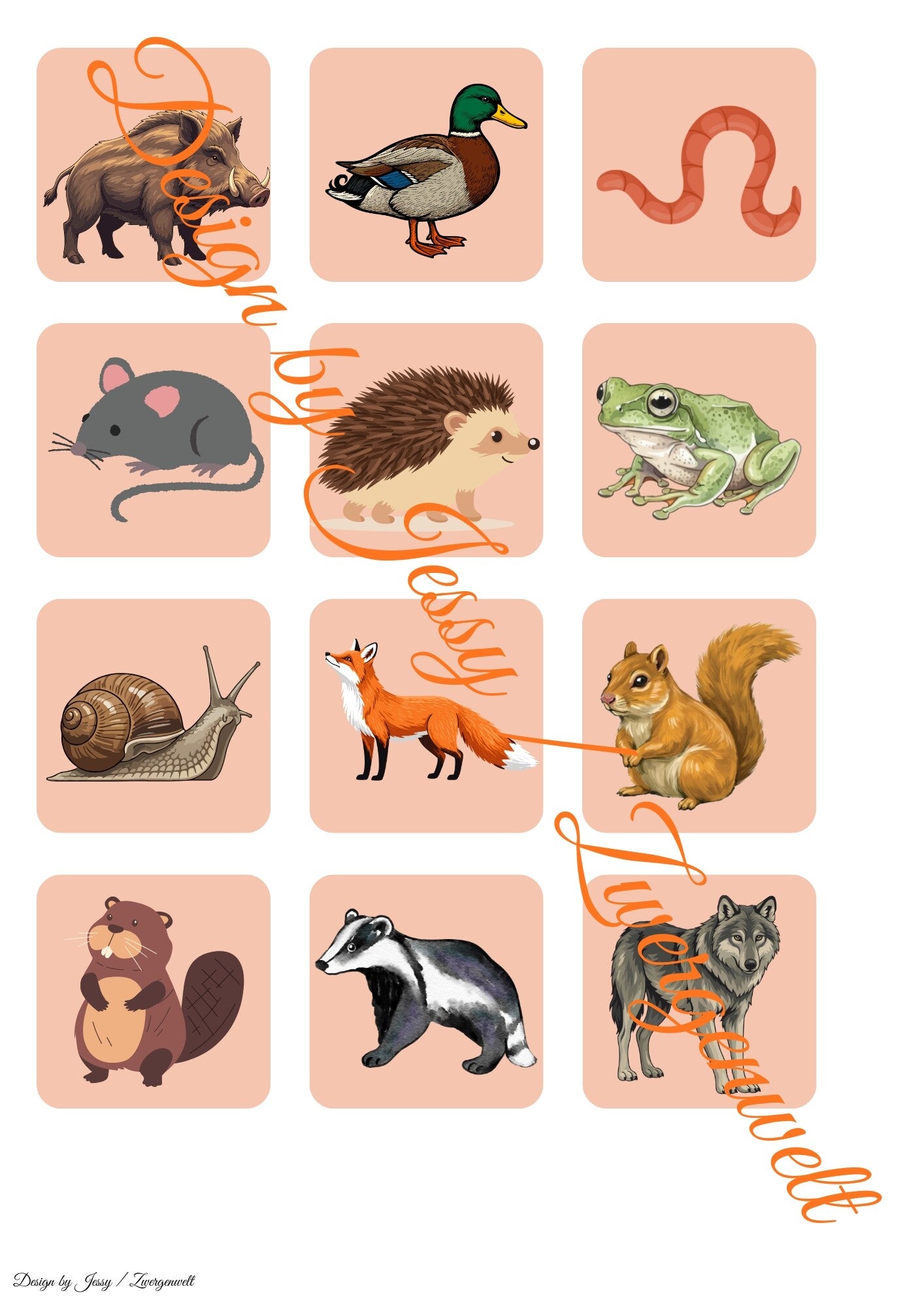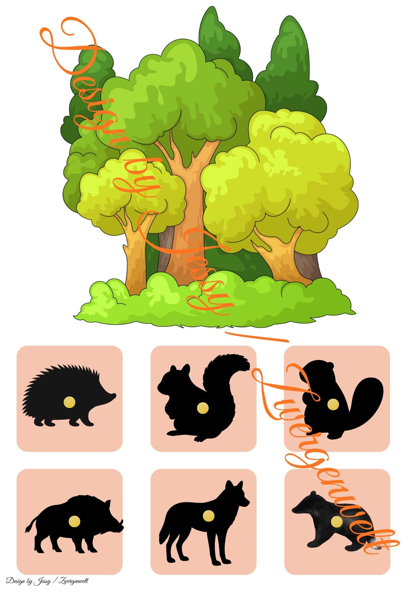 Dieses pädagogische Set enthält 12 farbenfrohe Illustrationen von Waldtieren (z. B. Fuchs, Eichhörnchen, Igel, Wolf, Frosch, Schnecke) sowie ihren passenden Schattenbildern. Inklusive Wald-Hintergrund zum Ausdrucken und Basteln einer interaktiven Klett-Mappe – ideal für Kita oder Zuhause.