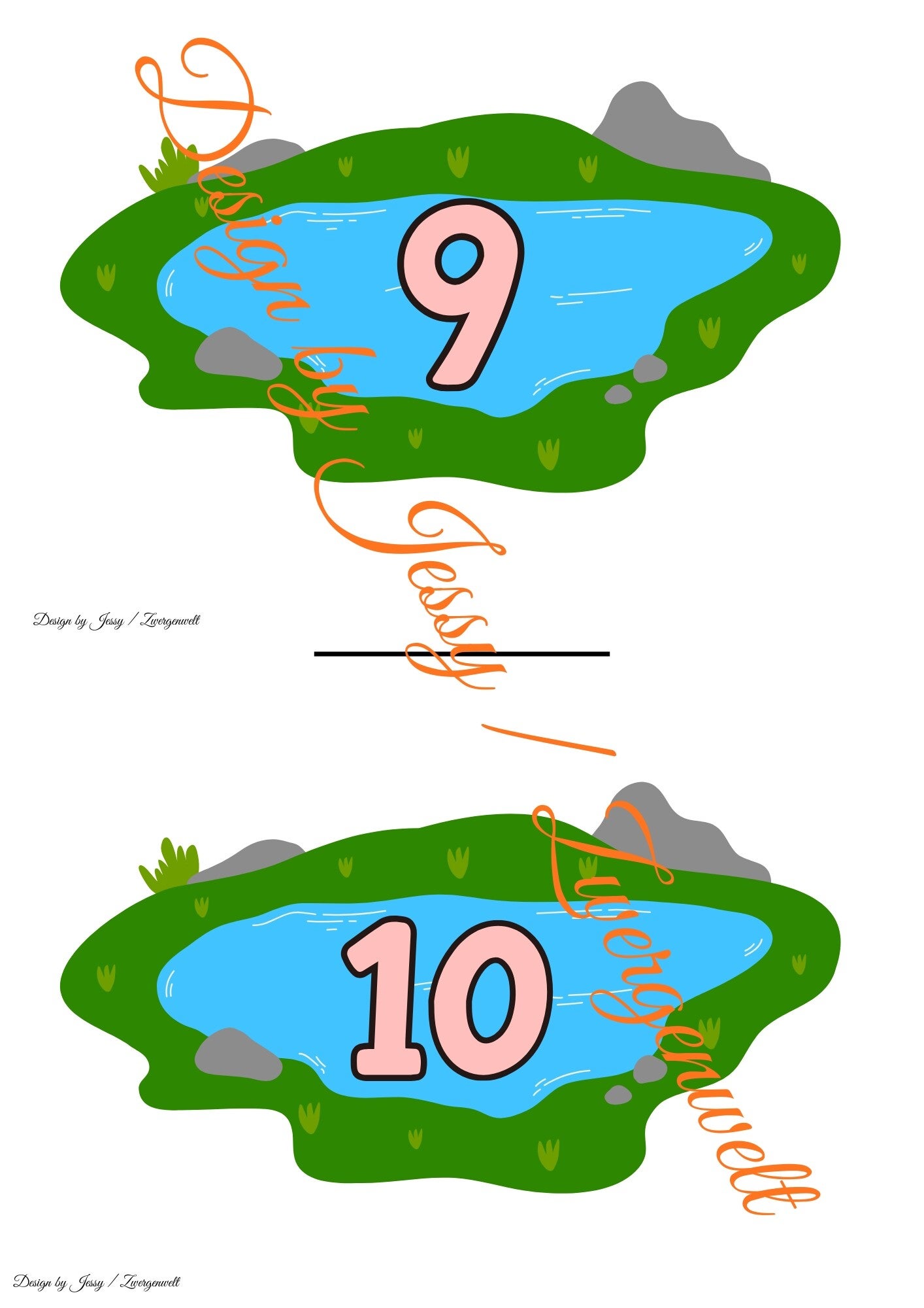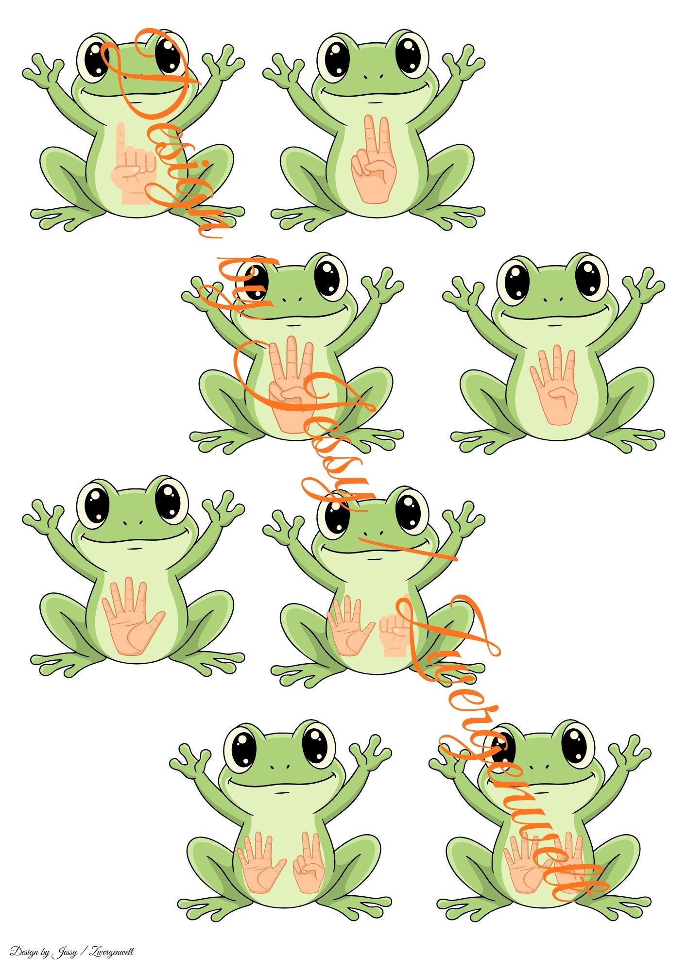 Dieses pädagogische Set enthält farbenfrohe Illustrationen von Zahlen 1 bis 10 und entsprechenden Fröschen-Mengen. Inklusive Teich-Hintergrund zum Ausdrucken und Basteln einer interaktiven Klett-Mappe – ideal für Kita oder Zuhause.