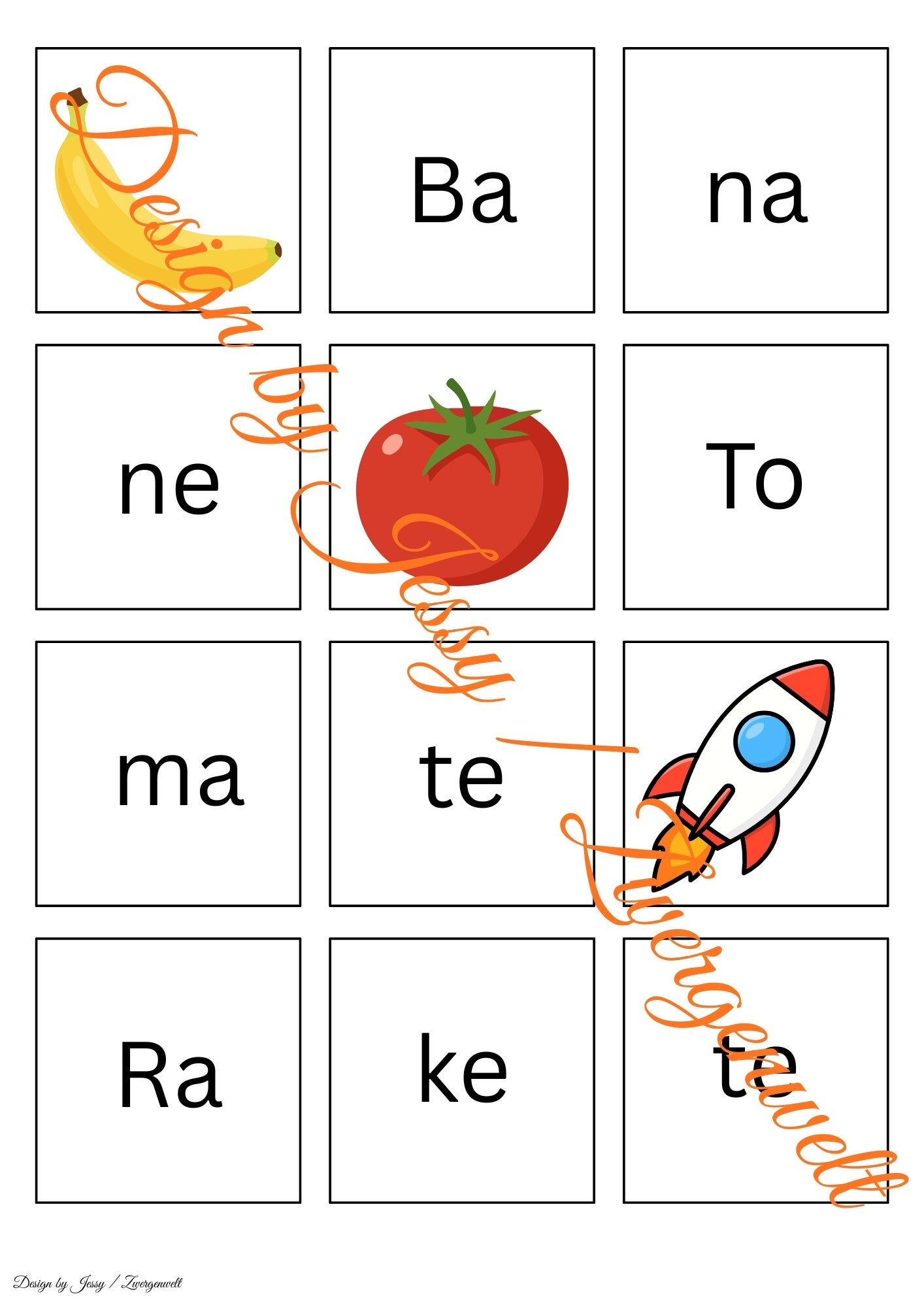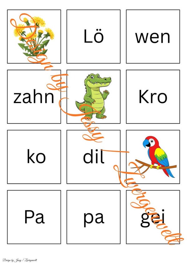 Kinder ab 4 Jahren lernen dadurch spielerisch Silben zu erkennen, Bilder zu Wörtern zuzuordnen und Feinmotorik zu stärken. Das Motiv fördert zusätzlich Konzentration und Sprachgefühl, basierend auf Prinzipien der frühen Sprachförderung.