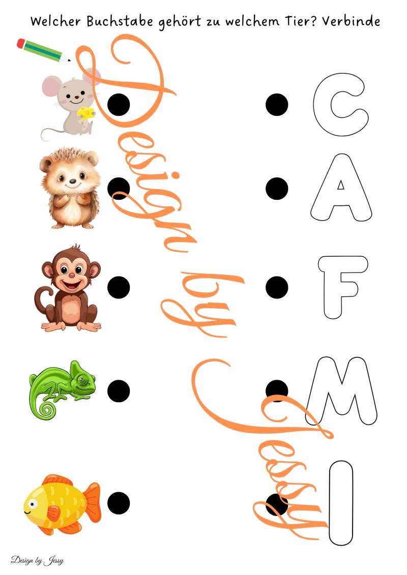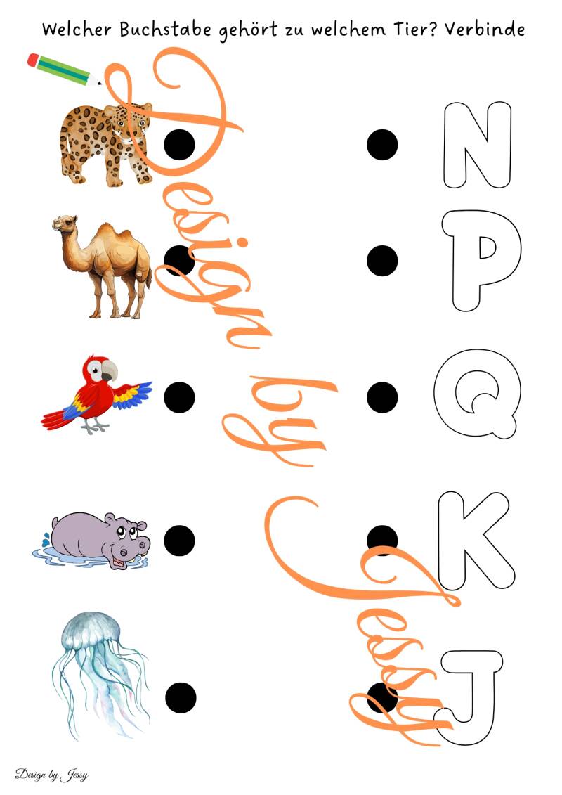 Unsere Arbeitsblätter zum Buchstaben verbinden unterstützen Kinder dabei, Buchstaben spielerisch zu erkennen und richtig zuzuordnen. Die Aufgabe besteht darin, das Tier mit dem passenden Buchstaben zu verbinden, meist dem Anfangsbuchstaben des Tiernamens.