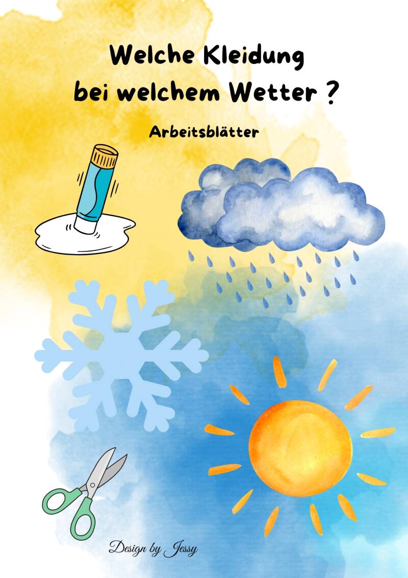Unsere Arbeitsblätter zum Thema Wetter und passende Kleidung unterstützen Kinder dabei, einen Zusammenhang zwischen Wetterbedingungen und geeigneter Kleidung herzustellen. Durch das Ausschneiden und Aufkleben von Kleidungsstücken lernen Kinder, welche Kleidung bei welchem Wetter getragen wird.