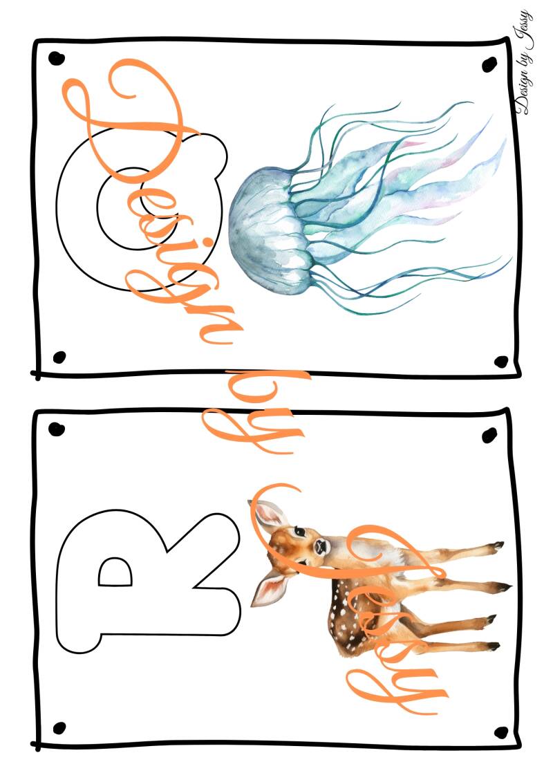 Unsere Buchstabenkarten mit Tieren zeigen jeweils einen Buchstaben und das dazu passende Tier. So lernen Kinder Buchstaben auf anschauliche und spielerische Weise kennen und können den Buchstaben direkt mit einem bekannten Tiernamen verknüpfen.