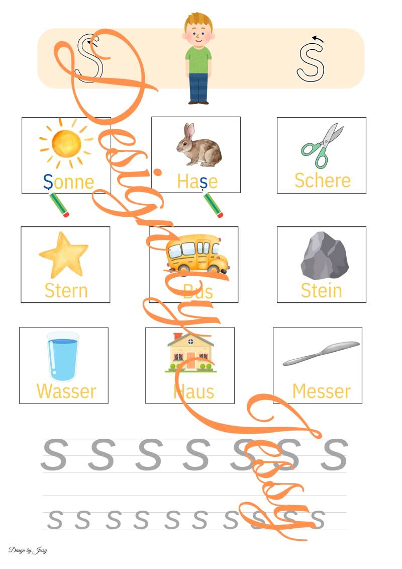 Unsere Arbeitsblätter zum Buchstaben S unterstützen Kinder dabei, den Buchstaben S/s Schritt für Schritt schreiben zu lernen. Durch abwechslungsreiche Übungen wie Nachspuren, freies Schreiben und Erkennen des Buchstabens entwickeln Kinder ein sicheres Gefühl für Form und Schreibweise.