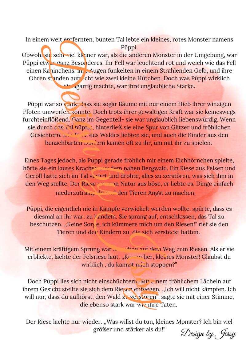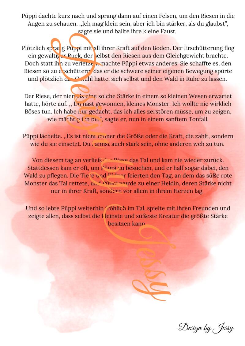 Püppi ist ein kleines, starkes Monster, das mutig sein Zuhause beschützt. Obwohl sie klein ist, stellt sie sich einem großen Riesen und zeigt, dass man Probleme ohne Gewalt lösen kann. Der Riese erkennt seinen Fehler und wird friedlich.