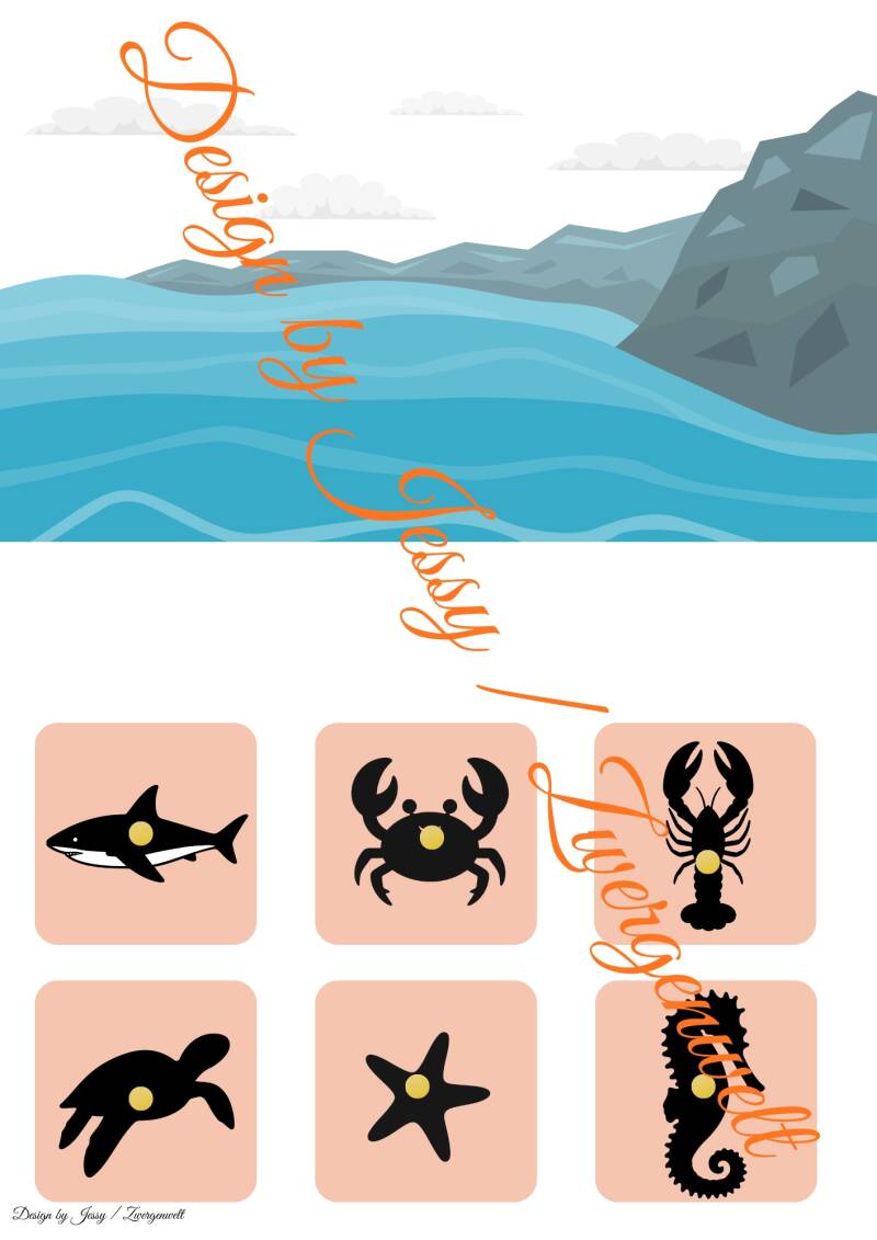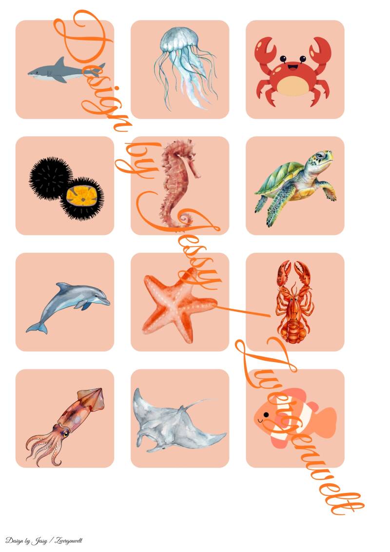 Dieses pädagogische Set enthält 12 farbenfrohe Illustrationen von Meerestieren (z. B. Hai, Qualle, Krabbe, Seepferdchen, Schildkröte, Delfin) sowie ihren passenden Schattenbildern. Inklusive Küsten-Hintergrund zum Ausdrucken und Basteln einer interaktiven Klett-Mappe – ideal für Kita oder Zuhause.