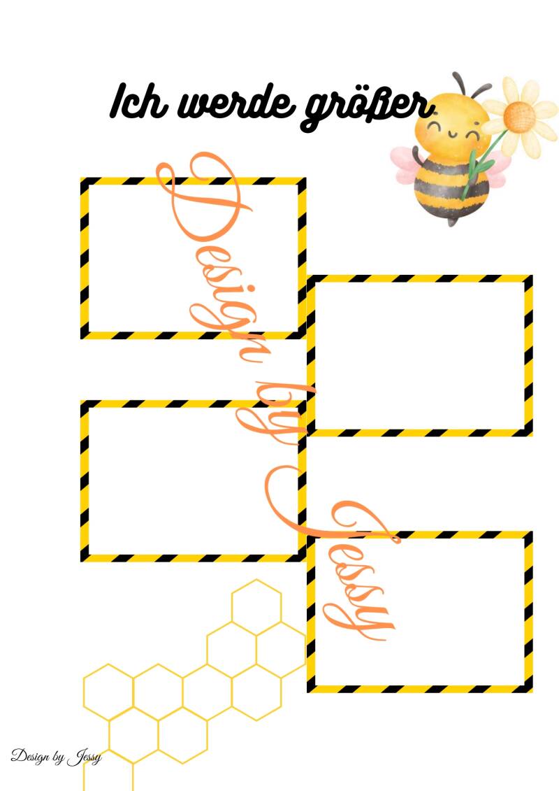 Diese Vorlagen stehen ganz im Zeichen des Themas Biene und sind alle im gleichen, liebevoll gestalteten Design gehalten. Die Seiten decken verschiedene Bereiche ab, wie zum Beispiel Backen, Morgenkreis, Mittagsschlaf und weitere alltägliche Situationen. So können Erlebnisse und Aktivitäten rund um das Bienenthema übersichtlich festgehalten werden.