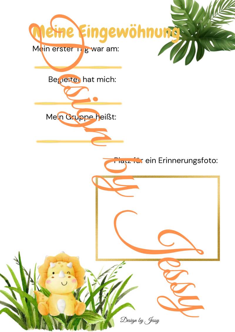 Gelber Dino und sind alle im gleichen, liebevoll gestalteten Design gehalten. Die Seiten decken verschiedene Bereiche ab, wie zum Beispiel Backen, Morgenkreis, Mittagsschlaf und weitere alltägliche Situationen. So können Erlebnisse und Aktivitäten rund um das Bienenthema übersichtlich festgehalten werden.