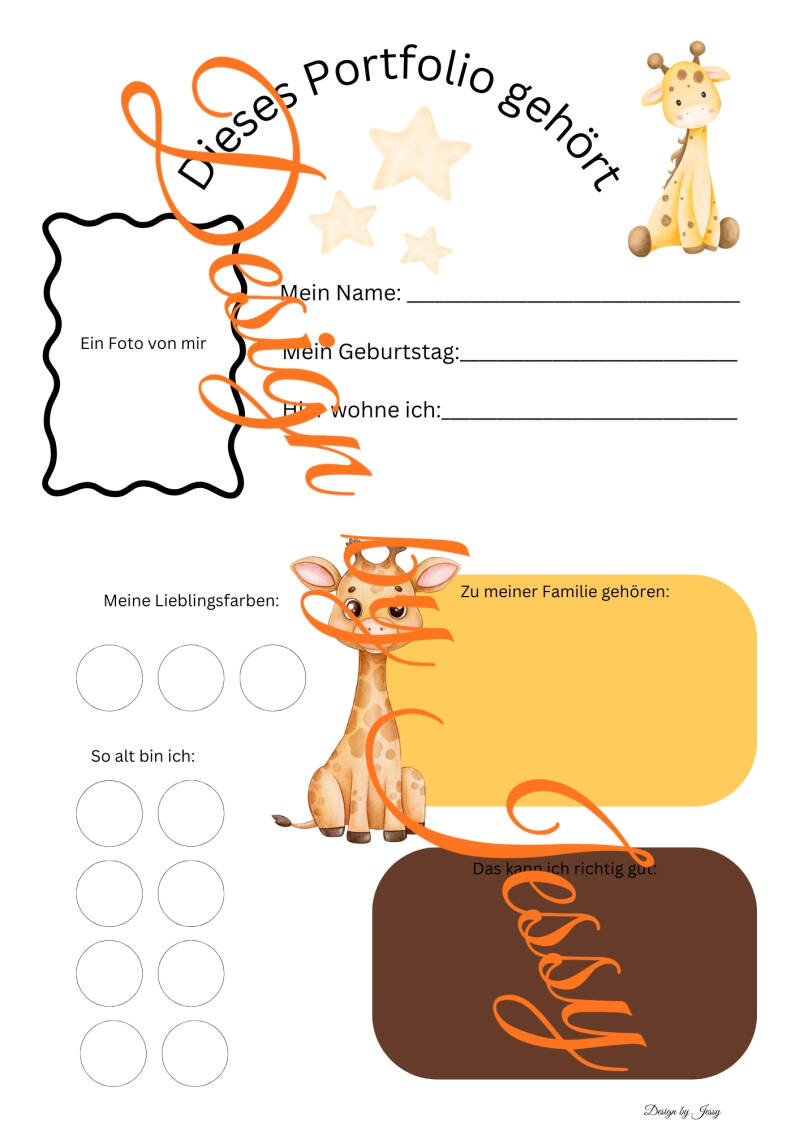 Dieses Deckblatt macht den Portfolio-Ordner eindeutig und persönlich. Es bietet Platz für Name, Foto oder eine individuelle Gestaltung und zeigt klar, wem das Portfolio gehört. So wird der Ordner zu einem persönlichen Begleiter durch den Kindergartenalltag.
