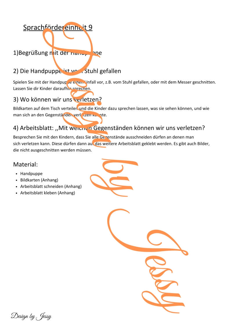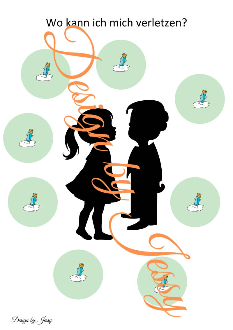 Ergänzend dazu arbeiten die Kinder mit Arbeitsblättern, auf denen Gegenstände aus der Wohnung ausgeschnitten und den passenden Gefahrensituationen zugeordnet und aufgeklebt werden. Dabei wird das Erkennen, Benennen und Beschreiben von Gegenständen und Situationen gefördert. Der Schwerpunkt liegt auf der Sprachförderung, der Wortschatzerweiterung sowie der Sensibilisierung für sicheres Verhalten im Alltag.