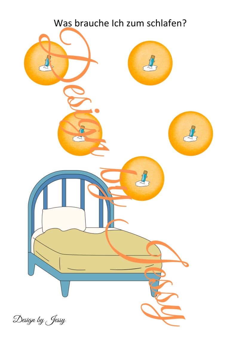 Ergänzend dazu bearbeiten die Kinder ein Arbeitsblatt, auf dem sie verschiedene Gegenstände ausschneiden und nur diejenigen aufkleben, die man tatsächlich zum Schlafen nutzt. Der Fokus liegt auf der Sprachförderung: Durch das Beschreiben, Begründen und Benennen der Gegenstände werden Wortschatz, Sprachverständnis und Ausdrucksfähigkeit gezielt gefördert.