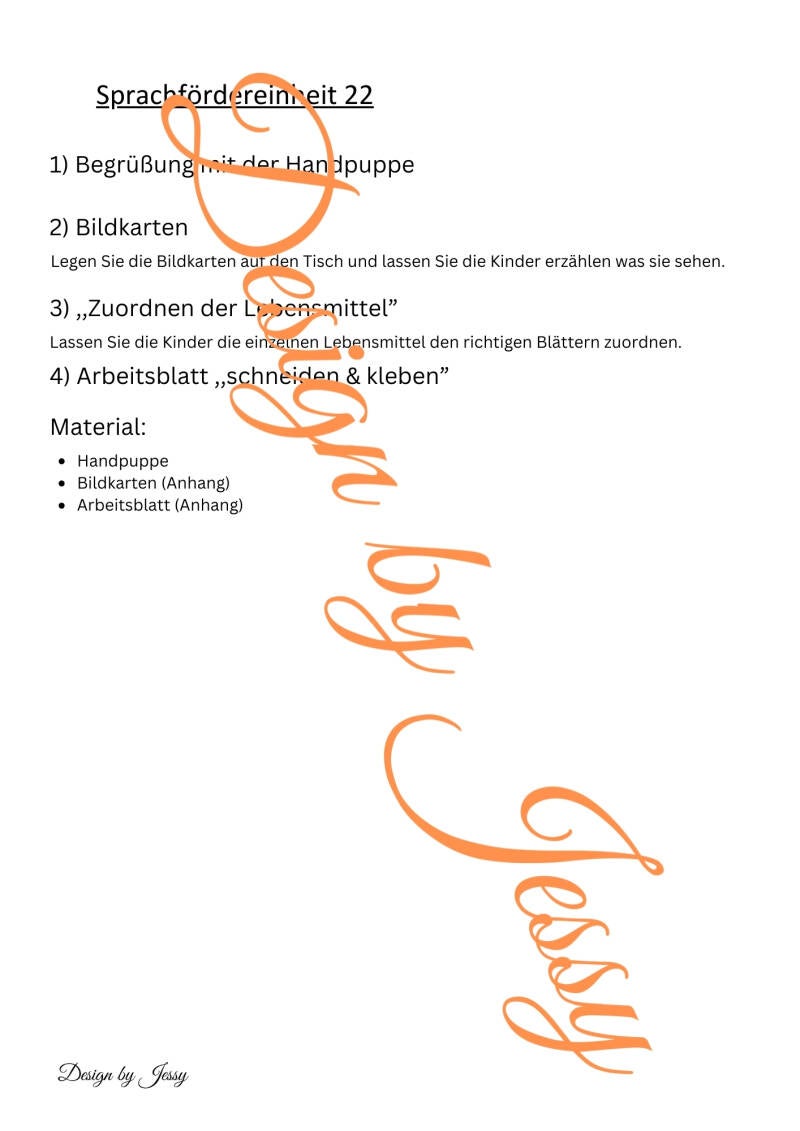 In dieser Einheit lernen die Kinder verschiedene Lebensmittel kennen und sprachlich zu benennen. In der Mappe befinden sich Bildkarten mit unterschiedlichen Lebensmitteln, die gemeinsam betrachtet und besprochen werden.