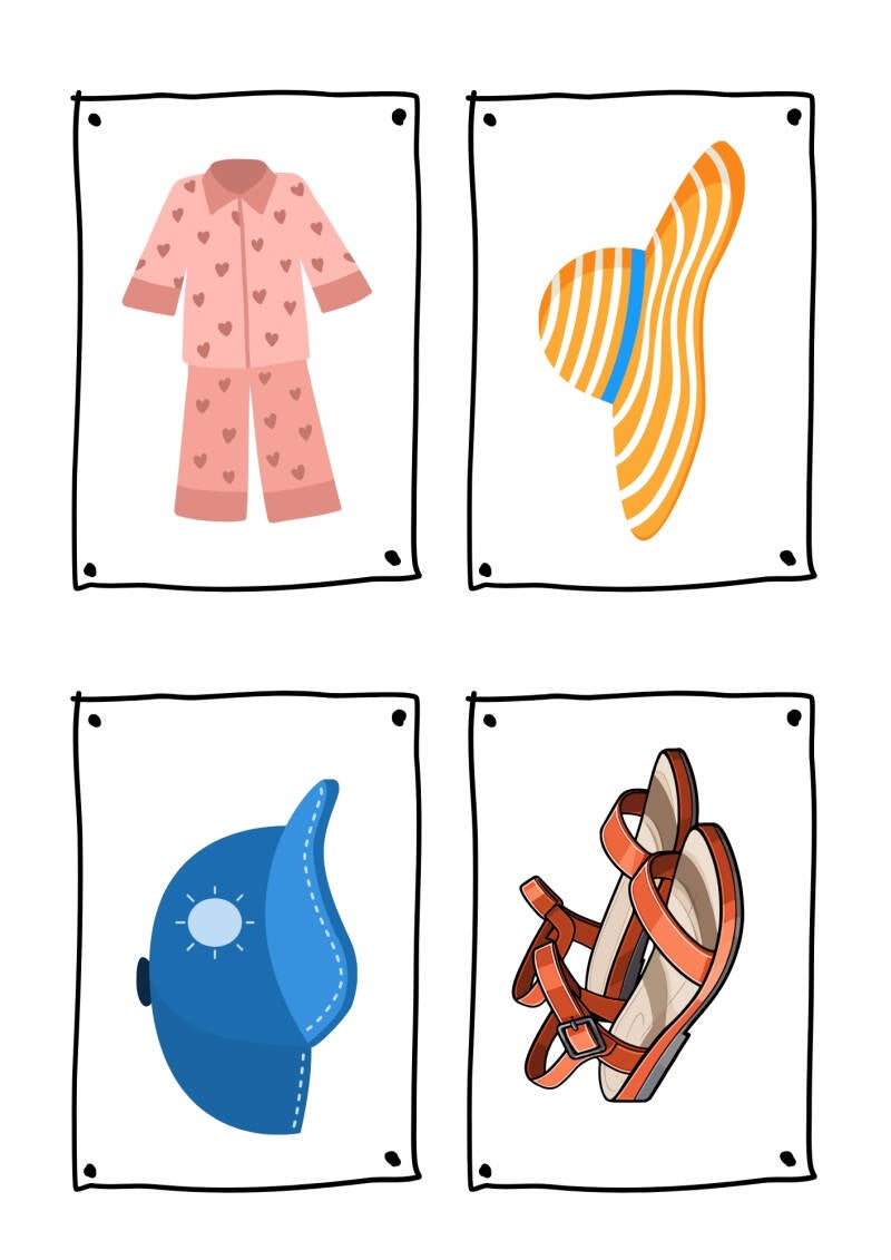 In dieser Einheit lernen die Kinder verschiedene Kleidungsstücke kennen und sprachlich zu benennen. In der Mappe befinden sich Bildkarten mit vielen unterschiedlichen Kleidungsstücken, die gemeinsam betrachtet, benannt und beschrieben werden.