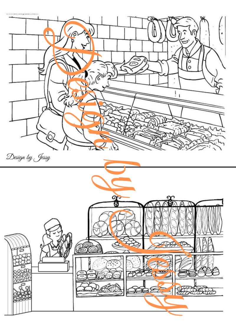 Passend dazu enthält die Mappe Ausmalbilder zu den verschiedenen Gebäuden. Während des Ausmalens werden die Gebäude erneut benannt und beschrieben. Farben und Funktionen der Häuser können sprachlich aufgegriffen und wiederholt werden.