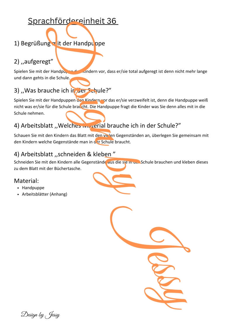 In dieser Sprachfördereinheit beschäftigen sich die Kinder mit dem Thema „Was brauche ich in der Schule“. Ziel ist es, den Wortschatz zu Schulmaterialien sprachlich zu erweitern und zu festigen.