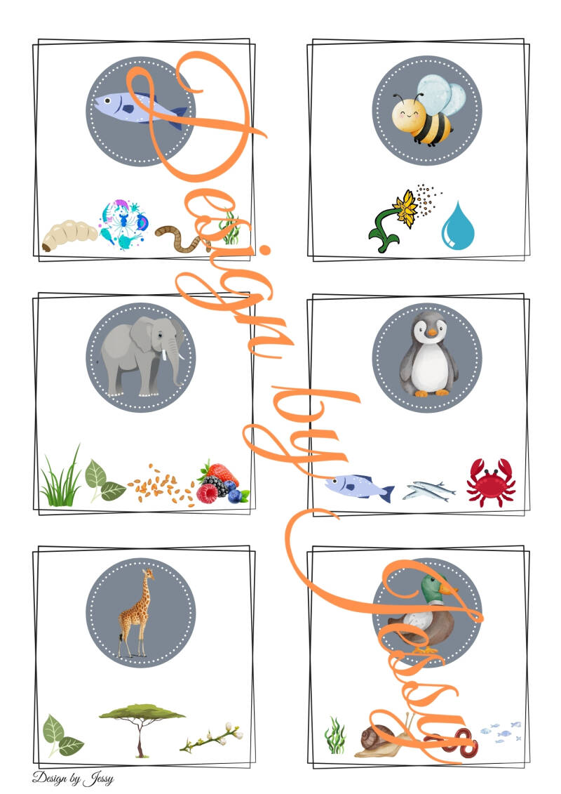 In der Mappe sind Steckbriefe einzelner Tiere enthalten, auf denen beschrieben wird, was die Tiere fressen und wie sie leben. Die Kinder betrachten die Steckbriefe, benennen die Tiere, ihre Nahrung und ihre Lebensweise, zum Beispiel: „Die Kuh frisst Gras“, „Das Huhn legt Eier“ oder „Das Schwein isst Gemüse“.