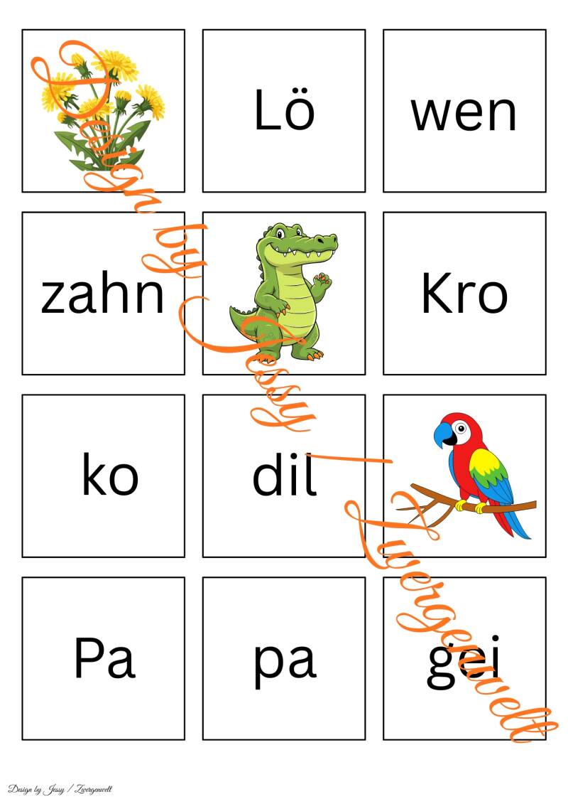Kinder ab 4 Jahren lernen dadurch spielerisch Silben zu erkennen, Bilder zu Wörtern zuzuordnen und Feinmotorik zu stärken. Das Motiv fördert zusätzlich Konzentration und Sprachgefühl, basierend auf Prinzipien der frühen Sprachförderung.