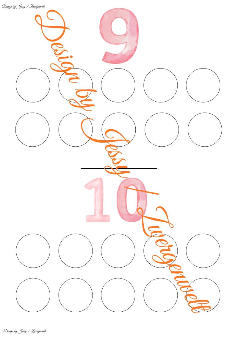 Dieses pädagogische Set enthält farbenfrohe Arbeitsblätter für Zahlen 0 bis 9 mit farbigen Punkten (z. B. blau, lila, grün, rot). Jede Seite zeigt Zahlen und Punkte zum Zählen und Malen – ideal zum Ausdrucken in Kita oder Zuhause.