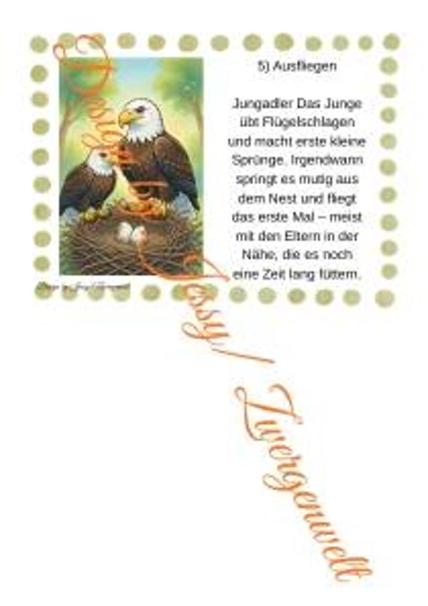 Vom Ei bis zum ersten Flug: Das Heft zeigt kindgerecht den kompletten Lebenskreislauf des Adlers – Brüten, Schlüpfen, Nestlingsphase und mutiges Ausfliegen. Mit schönen Bildern und 3 Ausmalvorlagen.