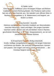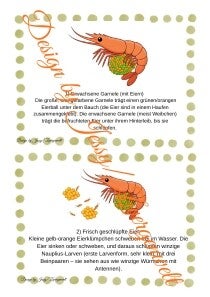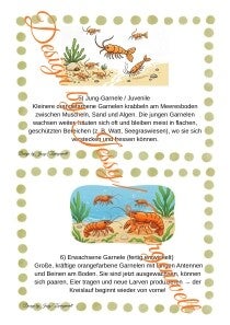 Vom Eier tragenden Weibchen über winzige Nauplius-Larven und mehrere Verwandlungsstufen bis zur fertigen orangefarbenen Garnele am Meeresboden: Das Heft zeigt kindgerecht den kompletten Lebenskreislauf der Garnele – mit schönen Bildern und Ausmalvorlagen.