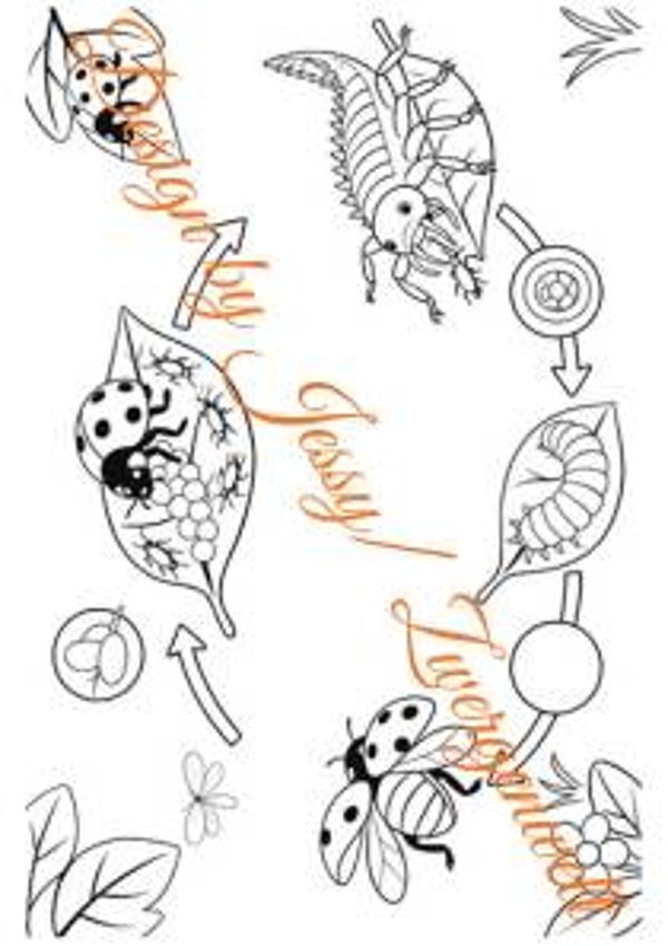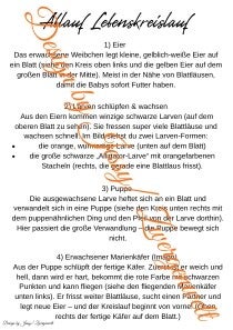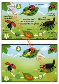 - Den Lebenszyklus eines Marienkäfers (vollständige Verwandlung)