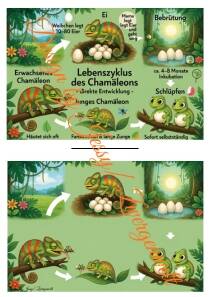 Vom Ei im Boden über das selbstständige Schlüpfen der winzigen Babys bis zum farbenprächtigen erwachsenen Chamäleon: Das Heft zeigt kindgerecht den kompletten Lebenskreislauf – mit tollen Bildern und Ausmalvorlagen.