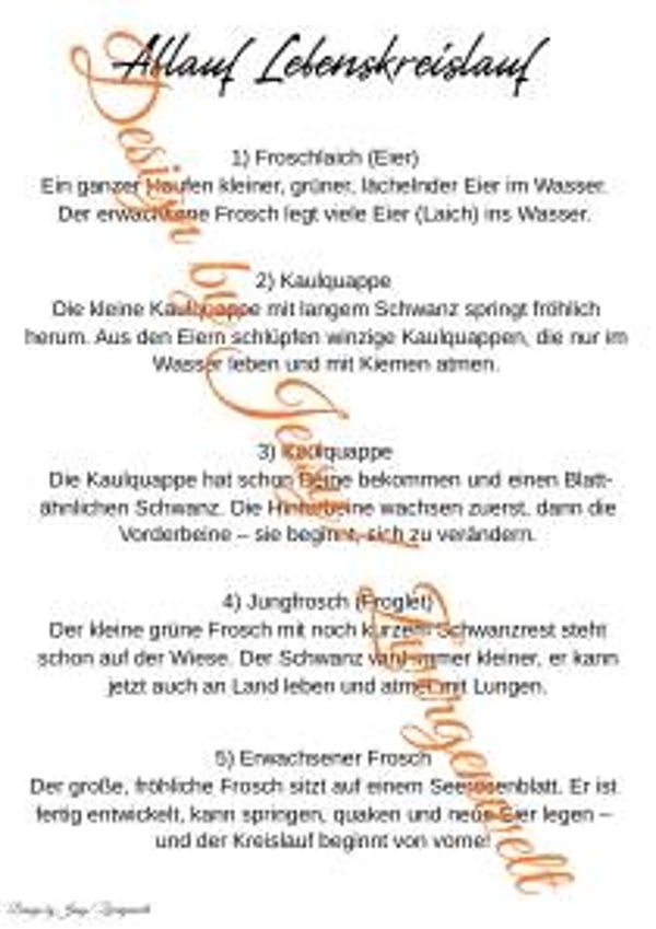- Den Lebenszyklus eines Frosches (Metamorphose)