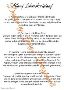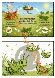 - Den Lebenszyklus eines Grashüpfers (unvollständige Verwandlung)