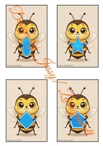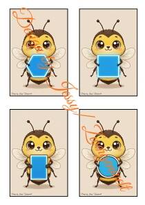 So funktioniert’s: Kinder schauen sich die Karte an, benennen die Form, die die Biene hält, vergleichen sie mit Gegenständen in der Umgebung oder sortieren die Karten nach Formen. Perfekt zum freien Spiel, für Partnerarbeit oder als kleine Memory-Variante. So werden visuelle Wahrnehmung, räumliches Denken und Konzentration ganz nebenbei gefördert – ohne Druck, nur mit Spaß!
