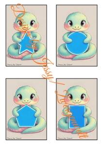 So funktioniert’s: Kinder schauen sich die Karte an, benennen die Form, die die Schlange hält, vergleichen sie mit Gegenständen in der Umgebung oder sortieren die Karten nach Formen. Perfekt zum freien Spiel, für Partnerarbeit oder als kleine Memory-Variante. So werden visuelle Wahrnehmung, räumliches Denken und Konzentration ganz nebenbei gefördert – ohne Druck, nur mit Spaß!