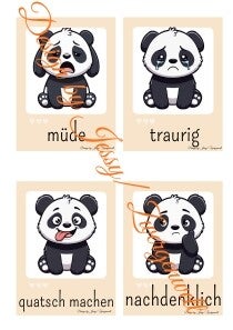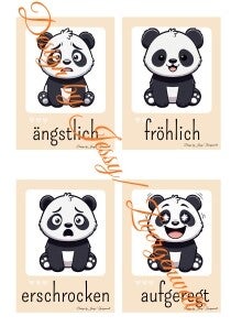 Jede Karte zeigt den Panda in einer typischen Körperhaltung und Mimik, sodass Kinder die Emotion sofort erkennen und nachfühlen können. Die klaren, kindgerechten Begriffe machen es leicht, über Gefühle zu sprechen – ideal für Zuhause, Kita, Grundschule oder in der therapeutischen Arbeit.