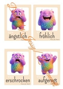 Jede Karte zeigt das Regenbogen Monster in einer typischen Körperhaltung und Mimik, sodass Kinder die Emotion sofort erkennen und nachfühlen können. Die klaren, kindgerechten Begriffe machen es leicht, über Gefühle zu sprechen – ideal für Zuhause, Kita, Grundschule oder in der therapeutischen Arbeit.