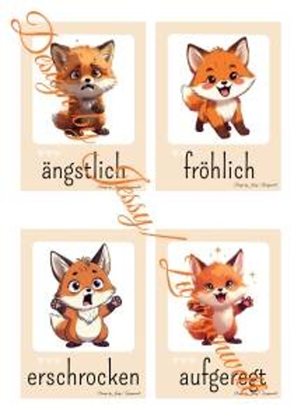 Jede Karte zeigt den Fuchs in einer typischen Körperhaltung und Mimik, sodass Kinder die Emotion sofort erkennen und nachfühlen können. Die klaren, kindgerechten Begriffe machen es leicht, über Gefühle zu sprechen – ideal für Zuhause, Kita, Grundschule oder in der therapeutischen Arbeit.