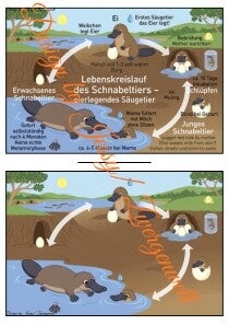 „Entdecke den kompletten Lebenskreislauf des Schnabeltiers – von der Eiablage über alle Entwicklungsstufen bis zum erwachsenen, geschlechtsreifen Tier!“