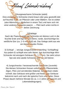 „Entdecke den kompletten Lebenskreislauf desr Schnecke – von der Eiablage über alle Entwicklungsstufen bis zum erwachsenen, geschlechtsreifen Tier!“